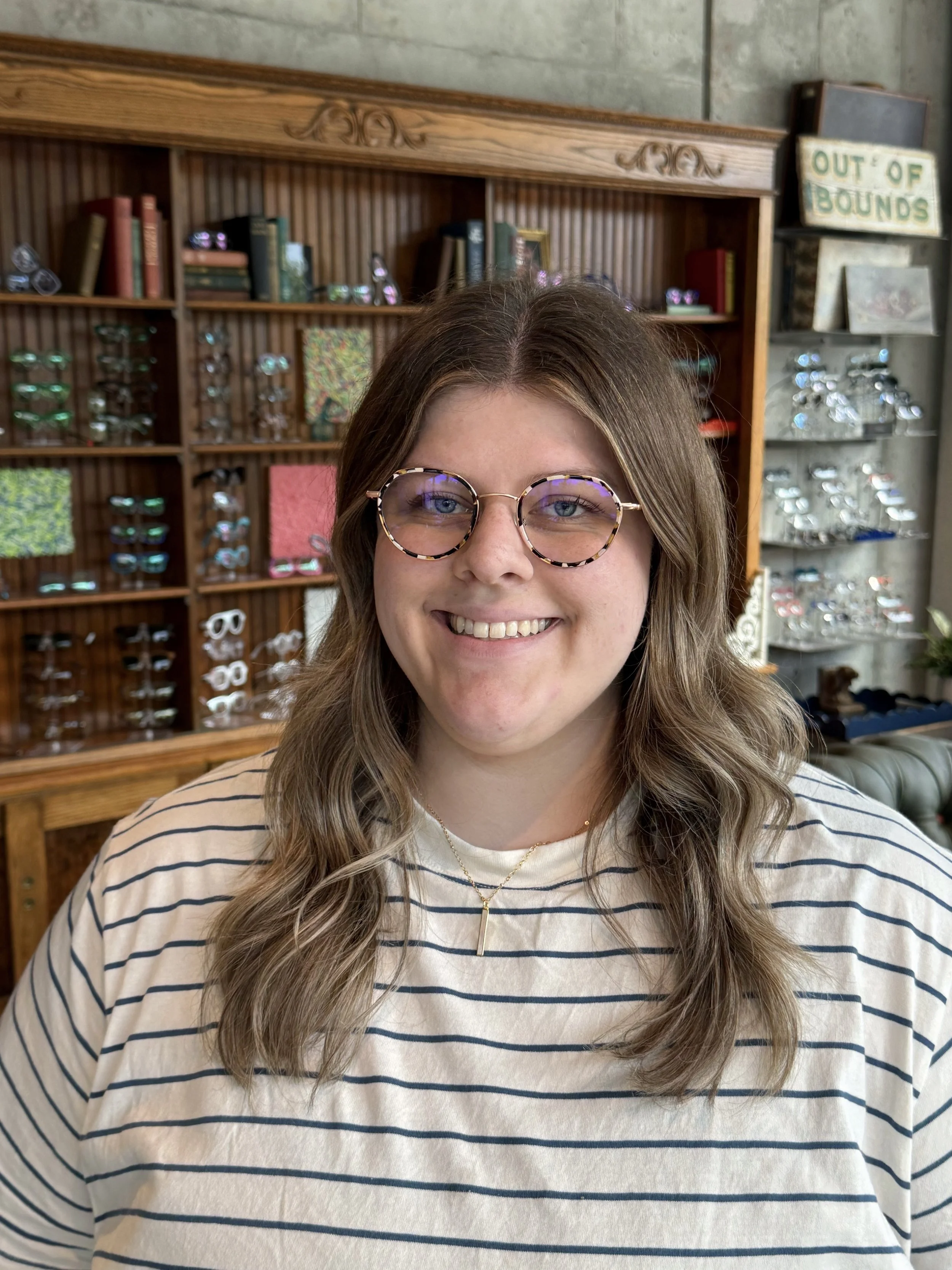 LE brings a creative and strategic approach to all things branding and marketing at Kinkead Optical Co. With a background in communication and design, she helped shape the store’s identity from the ground up, including its logo, social media presence, and community-facing campaigns. Her work is driven by a passion for storytelling, visual clarity, and helping small businesses find their voice. LE’s goal is to make sure every part of the brand feels cohesive, stylish, and personal.